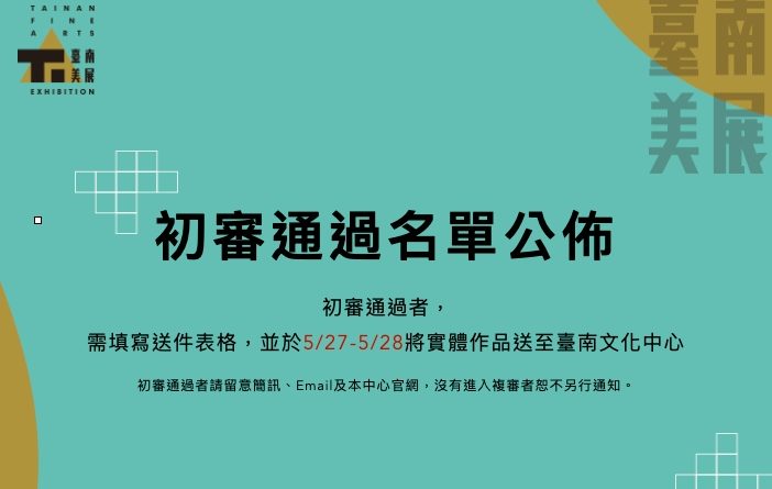 進入複審者請於以下時間將填好送件表格並將實體作品送至臺南文化中心